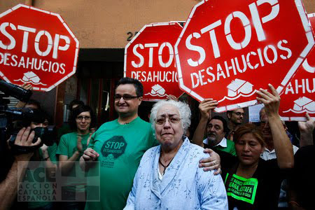 Ante todo esto, ¿qué tenemos que decir los cristianos y cristianas? Jesús nos exhorta una y otra vez en el Evangelio a estar al lado de los más necesitados, a fijarnos en los últimos, a acercarnos a los que están “sentados junto al camino” (Lc 18, 35). Son estas personas las que están sufriendo más directamente las consecuencias de la crisis y el despropósito de los desahucios. Como Iglesia no podemos quedarnos al margen de esta realidad, tenemos que ser sensibles al sufrimiento de tantas personas y estar activos en la búsqueda de alternativas a esta situación. En este Año de la Fe, que la Iglesia nos propone, releemos en el Catecismo de la Iglesia: “Los traficantes cuyas prácticas usurarias y mercantiles provocan el hambre y la muerte de sus hermanos los hombres, cometen indirectamente un homicidio. Éste les es imputable.” (CIC 2269) En el documento que nuestros Obispos publicaron el 3 de octubre, “Ante la crisis, solidaridad”, se pide “que los costes de la crisis no recaigan sobre los más débiles”. Es nuestra tarea como cristianos y cristianas en el mundo de hoy proponer alternativas, buscar soluciones y encarnarnos en estas realidades de precariedad y sufrimiento. Hemos de abordar el problema de los desahucios, colaborando directamente en la búsqueda de una solución y proponiendo como Iglesia, medidas de urgencia, y además no renunciar a la siempre necesaria denuncia de las causas (estructurales, morales y culturales) que están en el origen de la presente situación.