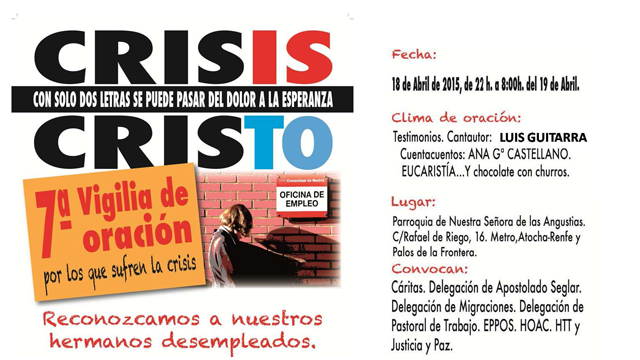 Por eso los cristianos de Madrid están invitados a pasar toda la noche o el tiempo que estimen oportuno en VIGILIA DE ORACIÓN, para contemplar la realidad con los ojos de Cristo y querer a los desempleados como Él los quiere.