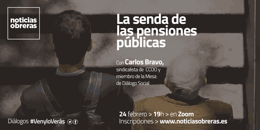 Noticias Obreras, revista editada por la Hermandad Obrera de Acción Católica (HOAC) ha convocado para mañana, miércoles 24 de febrero a las 19h (hora local) mediante videoconferencia, una nueva conversación sobre los contenidos de la publicación. En esta ocasión, el diálogo abordará “La seda de las pensiones públicas”, con la participación de Carlos Bravo, sindicalista de CCOO y miembro de la Mesa del Diálogo Social. Abierta la inscripción aquí, aforo limitado.
