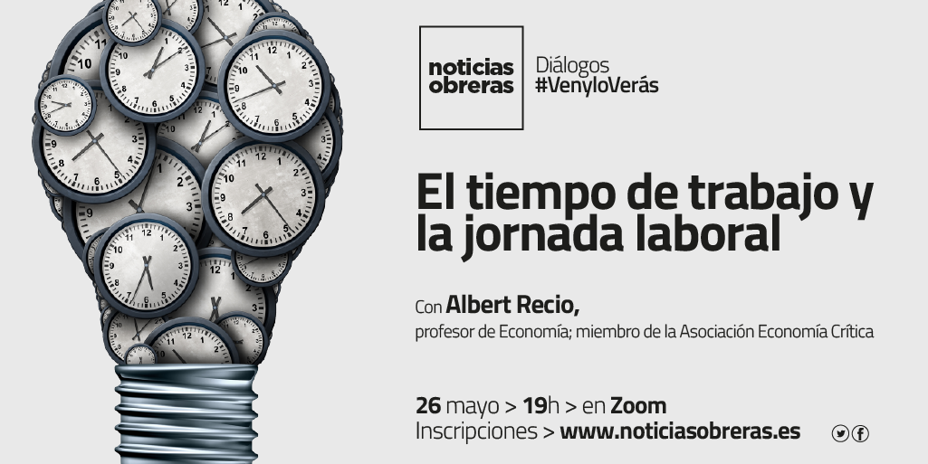 El miércoles, 26 de mayo a las 19h (hora local) mediante videoconferencia, Noticias Obreras –editada por la HOAC– convoca un nuevo diálogo titulado “El tiempo de trabajo y la jornada laboral” que contará con la participación de Albert Recio, profesor de Economía y miembro de la Asociación Economía Crítica. Inscríbete aquí, aforo limitado.