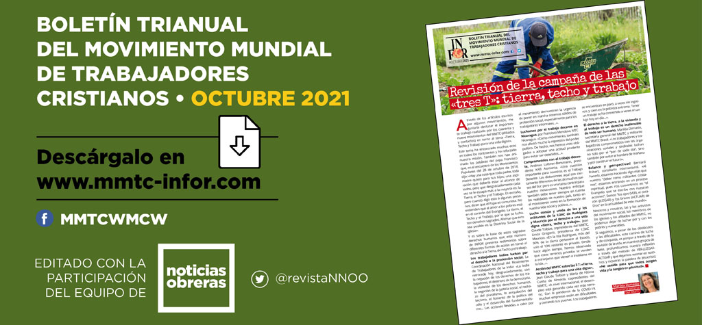 Presento los contenidos de un nuevo número del boletín informativo INFOR, editado por el Movimiento Mundial de Trabajadores Cristianos (MMTC), en colaboración con el Fondo de Solidaridad Internacional de la HOAC y el equipo de Noticias Obreras. En este número, el tema central es la revisión de la campaña de las 3T.