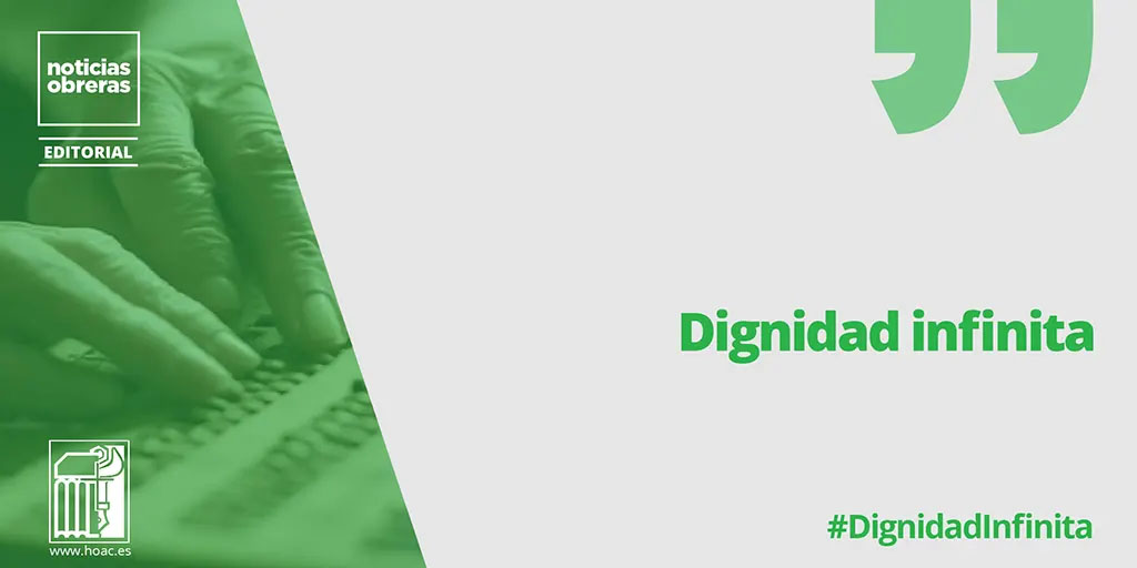 DIÁLOGO Y PARTICIPACIÓN | Este editorial está abierto a tu valoración. Lo puedes comentar aquí, en la página de la HOAC en Facebook y/o en la cuenta de Twitter. También lo puedes compartir en las redes sociales, utilizando la etiqueta #DignidadInfinita. Si lo prefieres, puedes hacer llegar tu opinión al correo electrónico participacion@noticiasobreras.es