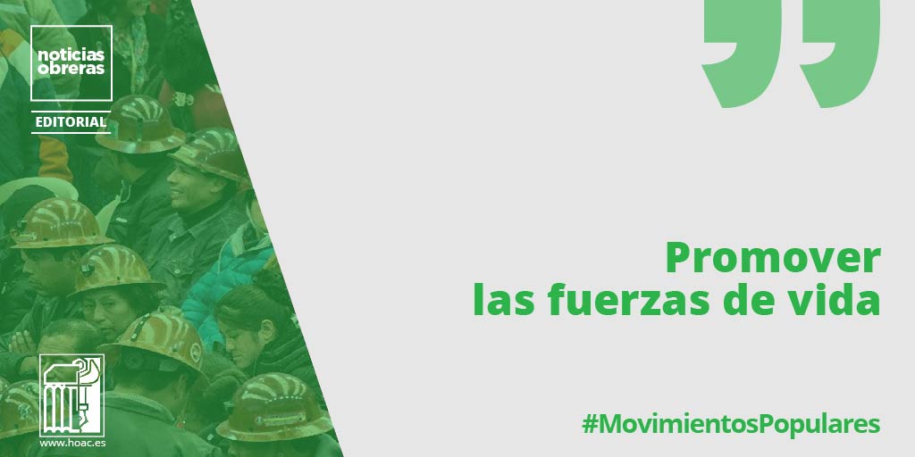 Los movimientos populares (campesinos que luchan por la tierra, trabajadores precarios e informales, quienes defienden el derecho a la vivienda y al trabajo decente, cuidan de la casa común, defienden barrios dignos…) junto a otras organizaciones sociales, eclesiales o sindicales…, son una auténtica fuerza de vida en un mundo donde pesan demasiado las fuerzas de muerte.